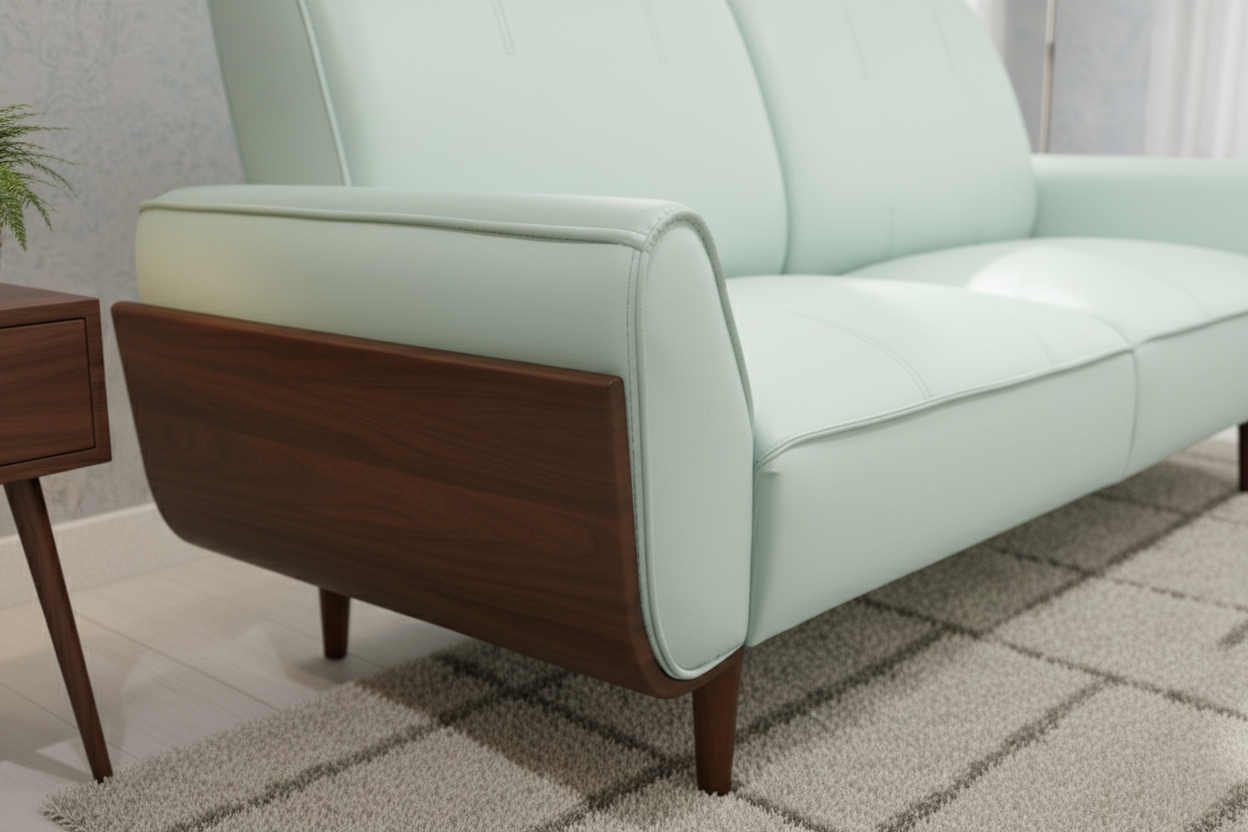 Straight lines, low-profile arms, and natural wood tones create a balanced look that complements upscale, modern, or Scandinavian interiors. -