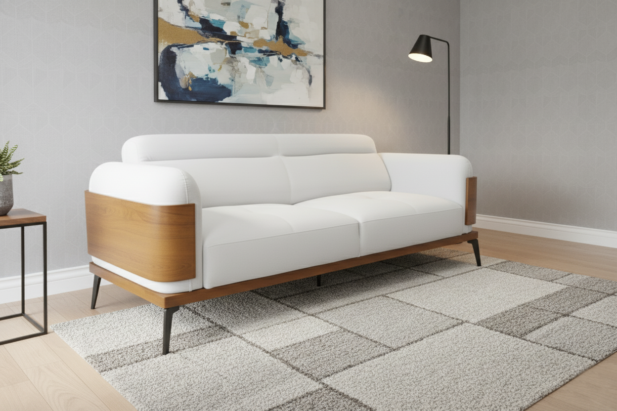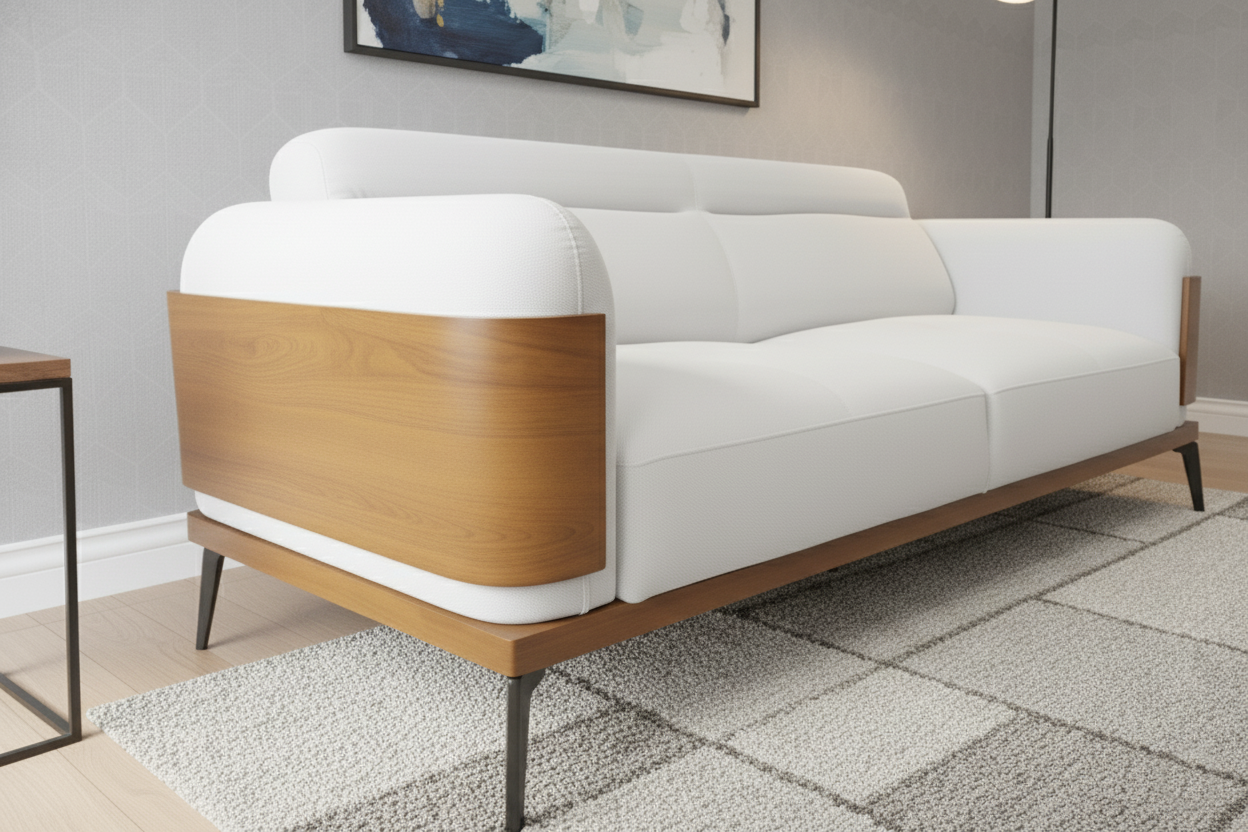 Upgrade your space with the HA 09 3-Seater Fabric Modern Couch with Side Wooden Panels—a contemporary piece that combines soft, cozy seating with sleek design and warm wooden details. Whether you're styling a modern home, loft apartment, or office lounge, this sofa offers the perfect mix of comfort, craftsmanship, and sophistication.