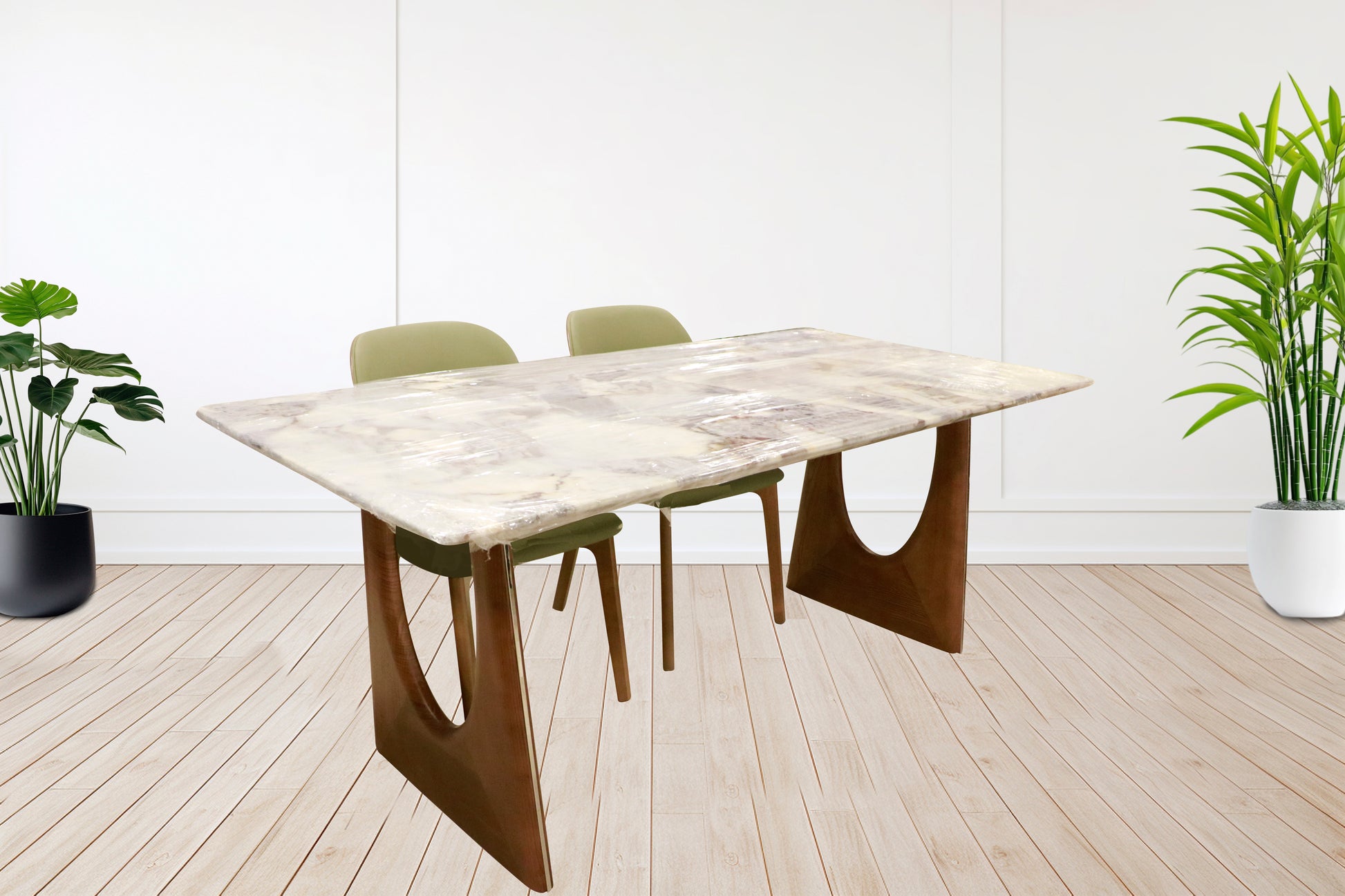 Elevate your dining space with the luxurious charm Crafted to perfection, this table features a smooth natural onyx top with warm, earthy tones and gentle veining that brings a refined yet organic touch to any room.