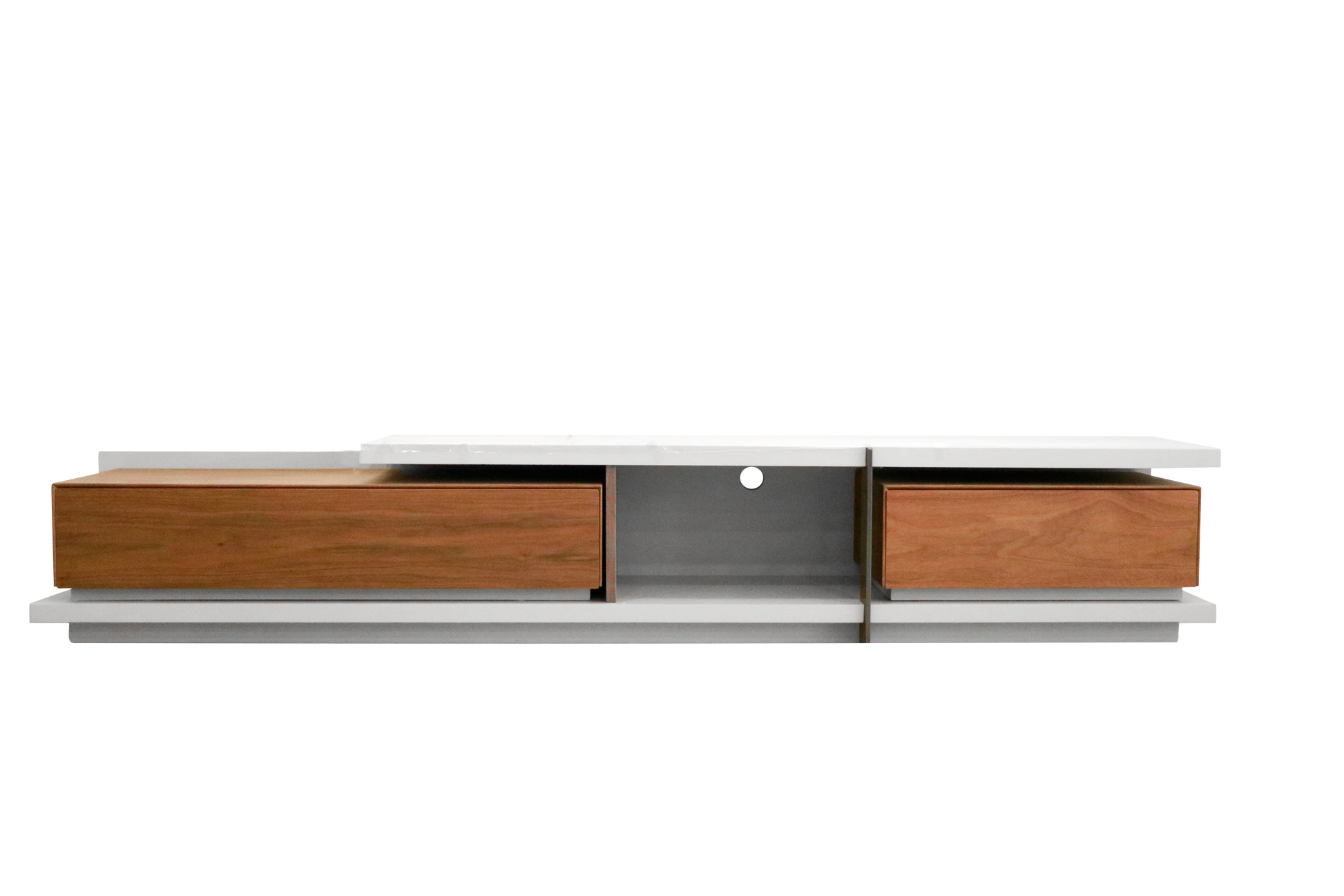 Premium Finish – Crafted with a high-gloss white surface and rich wood texture drawers for a striking visual contrast.