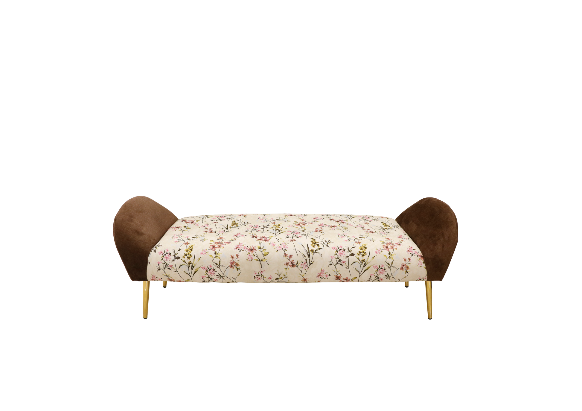 Bring garden charm into your home with the enchanting Reco 07 Recamier. Wrapped in an elegant floral upholstery with deep brown velvet curved arms and supported by sleek golden legs, this piece is a true blend of comfort and vintage-inspired beauty. Ideal for bedrooms, lounges, or statement corners, it adds a delicate yet luxurious touch to your space.